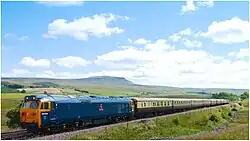 The class was built for working passenger services on the West Coast Main Line (WCML) north of Crewe, to Preston, Lancaster, Carlisle, Glasgow Central and Perth, occasionally reaching as far north as Aberdeen. Services south of Crewe would generally be worked by an electric locomotive, with the Class 50s taking over for the journeys that continued north.[9] Initially trains were hauled by a single locomotive, but from May 1970 they were paired on 8 out of 34 locomotive diagrams covering Anglo-Scottish services north of Crewe,[10] allowing greatly accelerated timings to be applied (including a six-hour schedule for the "Royal Scot" London Euston-Glasgow Central and v.v. service). Once the electric service was introduced as far as Preston in 1973, this double-heading by Class 50s transferred there, although poor availability often resulted in single-heading with consequent delays. The ability to operate using multiple working had been part of the locomotive's initial design brief, but only two of the class had the facility from new, but with the introduction of the regular double headed duties, this facility was fitted to the whole class.[9]