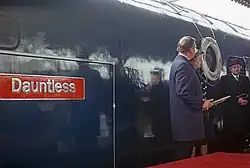 Several owning groups have ceremonially re-dedicated their locomotives to the warships whose names they carry. The HMS Hood Association rededicated 50031 Hood at the Mid Hants Railway, unveiling new crests. The crew of HMS Exeter re-dedicated D444 Exeter at the Severn Valley Railway a year before the vessel was decommissioned, unveiling a crest and early-BR-style nameplates. The captain of HMS Ark Royal performed the re-dedication ceremony for 50135 Ark Royal at the Eastleigh 100 Open Days.
