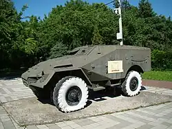 - BTR-40 converted into an armoured car armed with a medium machine gun in a cube-shaped turret on top of the superstructure inside the troop compartment. It also has four smoke grenade launchers on both sides of the hull.