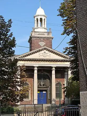 The Martin School, formerly known as the Martin Orthopedic School, also formerly known as Willis & Elizabeth Martin Orthopedic School, was designed by Irwin T. Catharine and built between 1936 and 1937. It is a one-story, ten-bay, brick and limestone building, which was designed in the Georgian Revival-style. It features a central projecting pedimented portico with Corinthian order columns and a bell tower. It was the first school in the Philadelphia school system for physically handicapped students.[3]