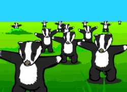 "Badgers", also known informally as "Badger Badger Badger" or "The Badger Song", is an animated meme by British animator Jonti Picking, also known as Mr Weebl. It consists of twelve animated cartoon badgers doing callisthenics, a mushroom in front of a tree, and a snake in the desert. The cartoon is accompanied by a bass line, above which a voiceover sings the names of what is shown on screen.[1]