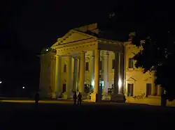 By 1860, when the first part of Lawrence Gardens had been laid out, the site had become a wilderness, partly used as a menagerie and the rest as a pleasure ground for badminton, archery and cricket. The first tree planted in the garden was in January 1862 and that same year Lawrence Hall was constructed for holding public meetings and theatrical entertainment.[6] In 1866 Montgomery Hall was also completed and in 1868 the site enlarged through the purchase of land to the south of the gardens. By 1876 the garden contained 80,000 trees and shrubs of 600 different species including trees from the plains of India, Austria, Syria, and southern Europe.[6]