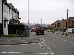 View along Coventry Road, Baginton, with the Coventry city centre skyline about 4 miles away in the distance. | |