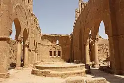 There are scant records of the Bahra' tribe in the pre-Islamic era, but it is apparent that they were part of the Ghassanid-led Arab tribal federates of the Byzantine Empire in the Syrian Desert.[3] The tribe is mentioned in a single verse of an Arabic poem from that era which has them based in Resafa (Sergiopolis), a trading post between Syrian Palmyra and Mesopotamian Sura that also contained a shrine dedicated to St. Sergius; the latter was venerated by the Arab Christian federate tribes.[4] The verse, recorded in the Al-Mufaddaliyyat, read: "And as for Bahra', they are a group whose place we know. They have a path around Resafa that is clear."[5]