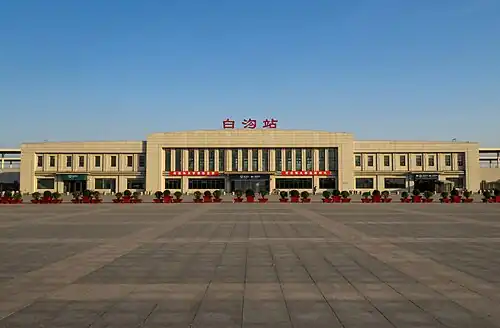 Baigou railway station (Chinese: 白沟站; pinyin: Báigōu zhàn) is a station on the Tianjin–Baoding intercity railway in Xiong County, Xiong'an New Area, Baoding, Hebei.