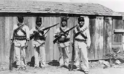 The Liberal Army had a few private soldiers who received a salary of 1 peso a day and the officers received a somewhat higher payment than their equivalent in the federal army. Given the low population in Baja California, the recruitment of foreigners resident in the United States was extensive. Some historians estimate that recruits were offered 100 to 600 US dollars in gold and farms of 160 acres each, although most likely the people who made these offers were the recruitment managers and not the PLM Board;[13] also during the Organizing Board's trial in Los Angeles for violating US laws of neutrality during the Baja rebellion, a smuggler stated that the US government had offered him and his companions exhoneration, in exchange for helping prosecute Flores Magón, Librado Rivera and Anselmo L. Figueroa, and mentioned that they then fabricated what they had been asked to by the Board in Los Angeles, and received 5 dollars and the promise of 160 acres of land.[14]
