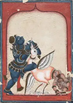 Bakasura (Sanskrit: बकासुर, IAST: Bakāsura) or Vakasura is the crane asura killed by the Hindu god Krishna. He is the companion of King Kamsa and the brother of Putana and Aghasura.[1] He was sent by him in the form of a giant crane to kill Krishna so that the boy would not be able to kill the king, which was claimed as a prophecy by an unknown voice and the Devi Yogamaya.[2][3] Bakasura was then killed by Krishna when the boy pushed his beak until it snapped.[4]