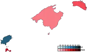 ![]() Constituency results map for the Parliament of the Balearic Islands | |||||||||||||||||||||||||||||||||||||||||||||||||||||||||||||||||||||||||||||
