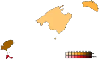 2. ^ Results for PSM (1.2%, 2 seats) and PCIB in Menorca (0.1%, 0 seats) in the 1983 election.