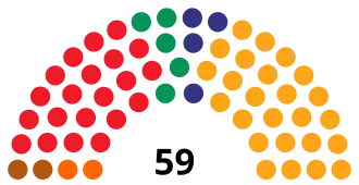 Last election 21 seats, 35.6%[a] 21 seats, 34.7% 0 seats, 2.1%