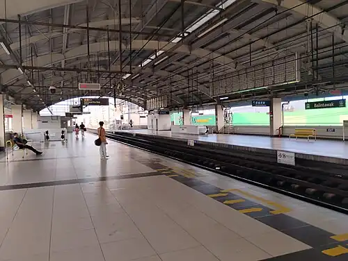 Balintawak station was once planned as an intermediate station of EDSA North Transit (ENT) Link Stage 1, a separate project that would have linked the MRT Line 3's terminus at North Avenue station with the LRT Line 1 and PNR North Main Line in Caloocan.[2] During that time, no rail lines operated along the northern section of EDSA. However, the project never came into fruition when it was replaced by the Line 1 North Extension Project, a 5.4-kilometer (3.4 mi) extension of LRT-1 to the North Avenue station as part of the MRT-LRT closing the loop project to integrate the operations of the LRT-1 and MRT-3. While Balintawak station became part of the new project, full integration did not materialize, though the opening of the North Triangle Common Station is expected to materialize this. Construction of the North Extension started in July 2008 and was completed in 2010. Balintawak station was opened on March 22, 2010.[1] At that time, it was the temporary northern terminus of the line until the completion of Roosevelt station (now Fernando Poe Jr. station) in October 2010. It regained such status once again during the temporary closure of the station from September 2020 to December 2022 due to the construction of the North Triangle Common Station.[3]