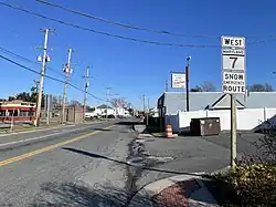 Despite the bypassing of the original Philadelphia Road, improvements continued to be made to MD 7. The state highway was widened with dual 7 feet (2.1 m) shoulders from the Baltimore city limit to Rossville in 1938.[18] MD 7 was widened through Havre de Grace in 1953 and through Elkton in 1954.[26] The highway was relocated and became a divided highway on both sides of its intersection with MD 543 in Riverside concurrent with the construction of MD 543's interchange with I-95 in 1989.[27] MD 7's roundabout at Holly Oak Circle in Riverside was installed in 2000.[28] Several portions of the state highway have been transferred to local maintenance. The portion of MD 7 to the south of US 40 in the southern portion of Aberdeen was removed in 1950; MD 159 was extended north to MD 7's new eastern terminus and the remainder of Old Philadelphia Road became the responsibility of Harford County and Aberdeen.[29] MD 7 between MD 213 and South Street in Elkton became one-way eastbound in 2001 and municipally maintained in 2003.[30][31] The western terminus of that section of MD 7 was truncated at MD 213 in 2010, resulting in the portion of Main Street from a dead end at the Amtrak Northeast Corridor to MD 213 also becoming the responsibility of Elkton.[32] In 2012, the MD 7 designation was removed from the portion of municipally-maintained roadway between MD 213 and South Street.[33] In 2018, a roundabout was constructed at Seven Trails Drive.[34]