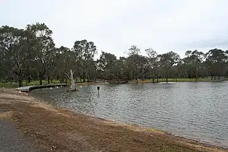 The park consisted of a main lake with a maximum depth of 2 feet 6 inches (75 cm), surrounded by bluestone and concrete walls. Three islands were situated in the centre, with public access to two of them via four footbridges. Water for the lake was supplied by two storm water drains at the northern end, as well as water pumped from the Barwon River. 150 car parking spaces were provided, as well as public toilets and picnic tables. A number of riverside walking and bike paths link Balyang Sanctuary with other parks along the Barwon River.