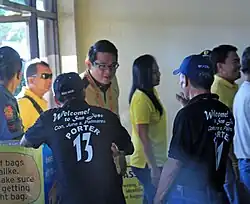 Aquino ran under the "Otso Diretso" coalition, a slate of eight senatorial candidates mostly from the Liberal Party and aligned groups. Unlike in 2013, when he was aligned with the incumbent administration, Aquino ran in 2019 as part of the opposition, campaigning against the backdrop of President Rodrigo Duterte's high approval ratings. As the lone incumbent senator on the Otso Diretso ticket, political scientists saw Aquino as the opposition's most prominent contender.[37] The slate campaigned on a platform of upholding democracy, checking alleged human rights abuses, and offering policy alternatives.[38] Their campaign manager, Senator Francis Pangilinan, described their campaign as an "uphill battle" against Duterte's well-funded allies.[39] Acknowledging their resource gap, the opposition adopted grassroots strategies: the Liberal Party launched "Project Makinig" (lit. transl. "Project Listen"), a door-to-door campaign in late 2018 to reconnect with voters at the barangay level.[37][40] Aquino and his Otso Diretso colleagues also held town hall meetings in an effort to shore up support without the benefit of massive advertising funds or the endorsements of local government officials.[40][41] They openly challenged administration-backed candidates to public debates. However, Duterte's allied slate (fielded by the ruling PDP–Laban and the President's daughter's Hugpong ng Pagbabago) largely ignored calls for debate,[37] with Malacañang Palace saying that Otso Diretso wanted to debate "because it would give them publicity."[42] Dr. Diana J. Mendoza, then-chair of the political science department at the Ateneo de Manila University, believes this limited Otso Diretso's visibility and made it harder for Aquino to contrast himself with rivals in the eyes of many voters.[37] During the campaign, Aquino relied on volunteers and youth groups from his 2013 electoral campaign network, and he toured vote-rich provinces advocating for lower prices and continuing social welfare laws.[43][44] Despite these efforts, Pulse Asia and Social Weather Stations (SWS) surveys showed him hovering near the cutoff of the "Magic 12" (the top 12 candidates win Senate seats).[37] In the final stretch, Aquino was the only opposition bet within striking distance of victory, consistently polling around 12th–14th place while his slate-mates lagged further behind.[45][46]