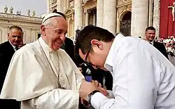 Political scientist Richard Heydarian identified Aquino as a progressive, center-left reformist in Philippine politics.[89] Since entering the Senate in 2013 as a Liberal Party member, Aquino has consistently advocated liberal-democratic and pro-poor policies,[90][91][92] focusing on social inclusion,[93] good governance,[94] and equitable development.[95][96] He supports higher wages,[97] entrepreneurship, and amending trade laws to protect local farmers.[98] Aquino advocates for increased education funding, curriculum reform,[99] and opposes mandatory ROTC without broader consultation.[100] Aquino has pushed for anti-corruption and anti-dynasty measures,[101][102] supports a firm stance against China's aggression while maintaining strong ties with allies,[103] and was a vocal critic of former president Rodrigo Duterte's drug war and ICC withdrawal.[104][105] On social issues, he supports the SOGIE Equality Bill and annulment reform,[80][106] opposes the death penalty,[107] and is open to medical marijuana pending further study.[95] He backs climate resilience,[108] humane transport modernization,[109] and opposes charter change that removes term limits or weakens democratic safeguards.[106]