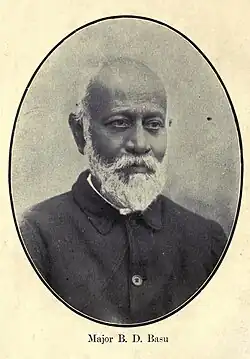 Baman Das Basu was born in Lahore, the youngest son of Bhubaneshwari Devi and Shyama Charan Basu (who came from Tangra Bhabanipur, Khulna and studied at Calcutta under Alexander Duff). His father moved to Lahore and initially served as a headmaster of an American Mission school. He was later involved in organizing the department of education in Punjab including Punjab University but died when Basu was just five months old.[1] An older brother Srisha Chandra Basu and his mother took care of him. Although entitled to pension, the family was cheated and pushed into poverty. His mother had to sell her jewellery to raise the children. Srisha was six years older and advised Baman to study Indian medicine systems. Basu entered the Lahore Medical College in 1882 but failed his midwifery exam in 1887. He however went on to study medicine in England, encouraged by his brother. He passed the LSA, MRCS and the IMS examinations and was commissioned in April 1891 and posted to the Bombay Presidency where he served until 1907. He saw wartime action in Sudan and in Chitral, and suffered scurvy, but his longest spell was as a civil surgeon in Ahmednagar. He took early retirement when he no longer could bear the conflict of supporting imperialists and his nationalist vision.[2]