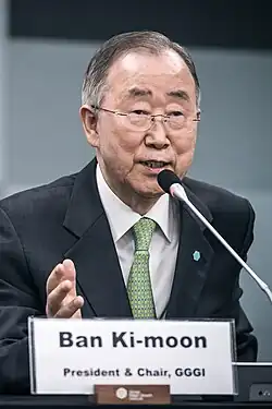 - ^ "Ban Ki-moon Elected President and Chair of GGGI | Inter Press Service". ipsnews.net. 20 February 2018. Archived from the original on 19 November 2018. Retrieved 19 November 2018.