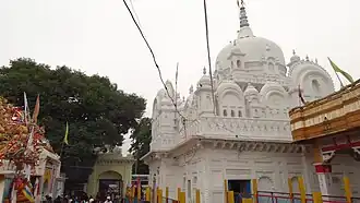 There is a main temple where Shiva-Linga is situated in main sanctum. Devi Parvati faces Shiva on an adjacent temple.