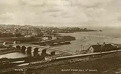 The GNoSR obtained a general amalgamation act of Parliament, the Great North of Scotland Railway (Amalgamation) Act 1866 (29 & 30 Vict. c. cclxxxviii), with other provisions on 30 July 1866;[4] these included a further extension from the existing terminus to Macduff itself. The GNoSR took its time about making the extension, but Colonel Rich of the Board of Trade made an inspection on 28 June 1872, and the extension opened on 1 July 1872. The cost of the extension as declared in the authorising act of Parliament had been £5,356.[18] The former terminus was now closed; there was a new intermediate station at Banff Bridge.[19][7][6]