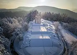 On top of the hill stands the Monument to fallen Krajina soldiers, a work of Antun Augustinčić and dedicated to the dead soldiers of the People Liberation War in Bosanska Krajina. It is possible to see the whole city of Banja Luka from this place.[1] The serpentine road on Banj brdo that leads to the monument was made between 1932 and 1933 and a small tourist bus between the top of the hill and the city of Banja Luka is circulating on it during the day (from April 22 to September 30).[2][3]