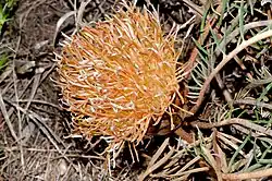 Open flowers of Banksia pteridifolia subsp. vernalis