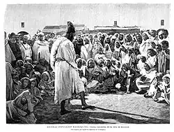 The Banu Ubayd Allah descended from Ubayd Allah bin Sahir (or Saqil), son of the Ma'qil forefather.[4] They were the biggest sub-group of the Ma'qil and lived as nomads in the southern hills between Tlemcen and Taourirt.[6] In their nomadic travel they reached as far as the Melwiya river in the north and Tuat in the south.[6] The Beni Ubayd Allah later divided into two sub-tribes: The Haraj and The Kharaj.[7]