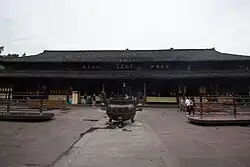 Now the existing main buildings include the Shanmen, Hall of Mi Le, Mahavira Hall, Seven Buddha Hall and Zangjing Ge.[3]