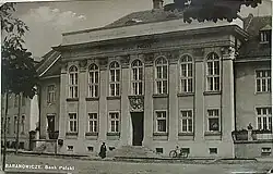 On 1 August 1919, it received city rights and became a powiat centre in the Polish Nowogródek Voivodeship. According to the 1921 census, the city had a population of 11,471, 56.2% Jewish, 25.5% Polish, 16.6% Belarusian and 1.5% Russian.[6] Soon, the city started to grow and became an important centre of trade and commerce for the area. The city's Orthodox cathedral was built in the Neoclassical style in 1924 to 1931 and was decorated with mosaics that had survived the demolition of the Alexander Nevsky Cathedral, Warsaw. In 1930, a monument to Hungarian Lieutenant colonel Artur Buol, a hero of Polish fights in the Polish–Soviet War, was unveiled in Baranowicze.[7] In the interbellum, the grandparents and the father of Polish politicians Lech Kaczyński and Jarosław Kaczyński lived in Baranowicze.[8]