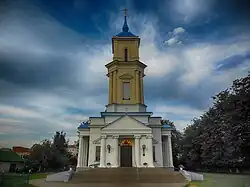 On 1 August 1919, it received city rights and became a powiat centre in the Polish Nowogródek Voivodeship. According to the 1921 census, the city had a population of 11,471, 56.2% Jewish, 25.5% Polish, 16.6% Belarusian and 1.5% Russian.[6] Soon, the city started to grow and became an important centre of trade and commerce for the area. The city's Orthodox cathedral was built in the Neoclassical style in 1924 to 1931 and was decorated with mosaics that had survived the demolition of the Alexander Nevsky Cathedral, Warsaw. In 1930, a monument to Hungarian Lieutenant colonel Artur Buol, a hero of Polish fights in the Polish–Soviet War, was unveiled in Baranowicze.[7] In the interbellum, the grandparents and the father of Polish politicians Lech Kaczyński and Jarosław Kaczyński lived in Baranowicze.[8]