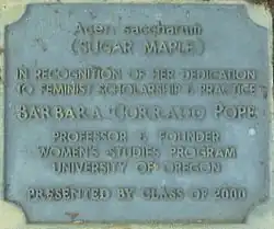 The annual Barbara Corrado Pope Award was established at the Clark Honors College for an honors thesis "in the area of diversity, including gender and ethnic studies".[9]
