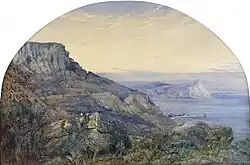 Despite all her public interests, Bodichon found time for society and her favourite art of painting. Bodichon studied under William Holman Hunt. Her water colours, exhibited at the Salon, the Royal Academy and elsewhere, showed originality and talent, and were admired by Corot and Daubigny. Bodichon's London salon included many literary and artistic celebrities of her day. She was an early member of the Society of Female Artists (SFA) and showed 59 art works with them between 1858 and 1886.[20] She was George Eliot's intimate friend and the first to recognise the authorship of Adam Bede. Her personal appearance is said to have inspired "the tall, red-haired heroine of Eliot's Romola with her 'expression of proud tenacity and latent impetuousness'".[21]
