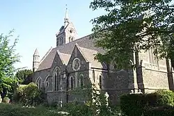 St Peter's Church, Bardon was designed by the architect J.B. Everard[6] (1844–1923)[13] and built in 1899.[6] St Peter's was built in memory of two members of the Everard family[14] who were co-owners of the quarry, and the architect also is buried in the churchyard. The church is built of granite, and its exterior masonry is not coursed but laid like crazy paving.[6]