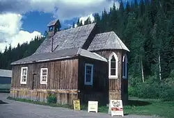 At first, Barkerville was a lone building built by Billy Barker and the prospectors who traveled with him. The town would then rapidly grow, filling out with homes, water wheels and flumes.[6] In 1863, the town would reach reach a population of roughly 10,000 people.[2][3]