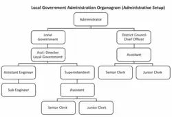 The District Council is concerned with rural development activities and functions pertaining to, public health, education, agricultural development and economic welfare, articles of food and drink, drainage, livestock and dairy development, culture and public safety. The District Council can generate revenue by levying fees and various taxes as given in part II of second schedule of BLGA 2010.