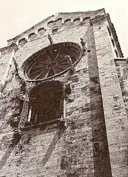 - Cathedral of Santa Maria Maggiore: erected on the former site of the temple of Neptune, is an example of the fusion of Gothic and Roman styles. In its interior, at a lower level, are grotticella tombs from the 3rd century BC, over which is the Palaeo-Christian basilica (6th century AD) with another basilica being added to that in the 9th century. In the 12th century a new building was erected in Romanesque style, being consecrated in 1267; this was renovated in the Gothic style in the 14th century