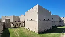 - The Castle, a structure initially erected in the 10th century by the Normans as a typical motte and bailey structure. During the Crusade period, it was a used as a hostel for soldiers leaving for the Holy Land. It was upgraded and enlarged substantially under the reign of Frederick II between 1225 and 1228. This corresponds to the period in which he launched a crusade from here, the Sixth Crusade. The castle was later expanded under the House of Anjou, when Barletta became an important centre of Aragonese-Spanish control in the area, in 1527. Charles had the building expanded again and the four massive bastions added to create the present fortress form. In 1915 the fortress, then in use as a barracks and military store, was bombarded by the Austro-Hungarian scout cruiser SMS Helgoland. In September 1943 it was the setting of an Italian military defence unit against a German army.