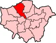 The constituency is a 'pie slice' pairing of the large Outer London borough of Barnet with the smaller Inner London borough of Camden. It stretches from Holborn in the south to the Greater London boundary in the north. It includes parts of central London, the inner city, suburban development and a semi-rural fringe.