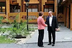 In December 2013 Ashton visited Kyiv. She said she was impressed by the "determination of Ukrainians demonstrating for the European perspective of their country" and observed "with sadness that police used force to remove peaceful people from the center of Kyiv... Dialogue with political forces and society and the use of arguments is always better than the argument of force".[55] Subsequently, Russian Deputy Prime Minister Dmitry Rogozin criticised Ashton's categorisation of the anti-government protests in Kyiv as peaceful in nature, pointing to the death of a number of police officers.[60]
