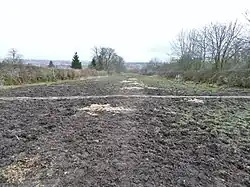 The approach to the building from the south was a long straight avenue twenty yards wide, bordered by high walls and once enclosing large gardens.[16] The section down to Causewayfoot was bordered by walls and the section down to the termination at Fudstone (now demolished) was tree-lined only. The remnants of the 'Grand Avenue' are still discernable.[30] A substantial walled garden in two portions ran down from the castle to the ravine or glen, long abandoned, and shown on the OS maps with a set of steps between the tow portions and a small building attached to the wall on the northern side. Paterson records that the extensive pleasure-grounds were "torn up by the plough".[31] The gardens once contained flowers and shrubs, potatoes, turnips, and orchards.[27] As late as 1856 the walled garden is shown as containing what may have been apple trees of which one survives (2015).[14]