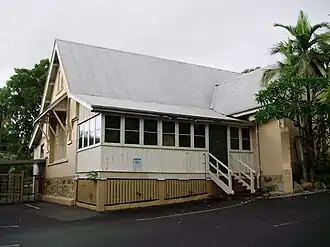 By the mid 1860s a school was needed in the rapidly growing Petrie Terrace area, and efforts commenced to raise the necessary funds. The long rectangular classroom with end porches and teachers room was erected in 1867 at a cost of around £400. The classroom was designed to accommodate 150 pupils, with separate "departments" for male and female students. Just over 300 students were enrolled at Petrie Terrace School by the end of 1868, although the average attendance for that year was 157 pupils.[1]