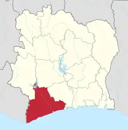 The district was created in a 2011 administrative reorganisation of the subdivisions of Ivory Coast.[4] Its territory is composed of the former region of Bas-Sassandra with the addition of the department of Fresco, which was transferred from the region of Sud-Bandama.[5]