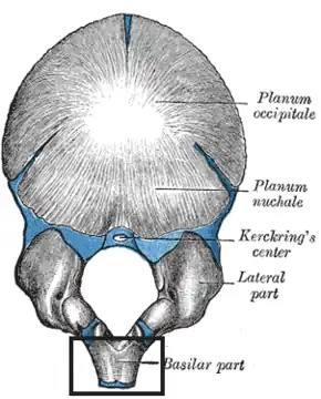 ![]() Occipital bone inner surface (basilar part is shown in red) | |