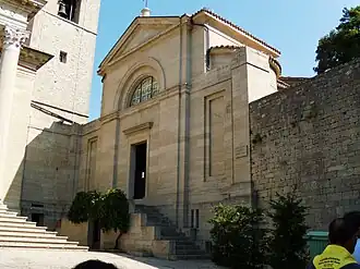 The present church was built in 1836 in place of an earlier one that dated to 7th century. It is built in the Neoclassical style, with a porch of eight Corinthian columns. Relics of Saint Marinus are enshrined in the church.[2][3][4]