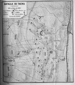 ![]() Battle of Tacna according to Diego Barros Arana's "Guerra del Pacifico" | |||||||