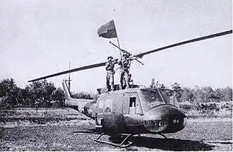 From 12–13 March the ARVN 45th Regiment was dropped by helicopter onto Hill 581, one mile (1.6 km) east of Phụng Dực, to begin a counterattack to retake Ban Mê Thuột which had fallen on 12 March.[14]: 169 Initially about 100 South Vietnamese helicopters participated in the operation, and 81 fighter-bombers were deployed to strike at PAVN positions to cover the landings. At 15:10, Phú took off in his Cessna U-17 to direct the operation over the skies of Ban Me Thuot. As he approached the battlefield, Phú radioed the ARVN units at Phụng Dực Airfield to notify them that an operation was underway, and he encouraged the soldiers to hold on to their positions. On the morning of March 13, another 145 helicopters were used to complete the first phase of the operation with the entire 44th Infantry Regiment, the last soldiers of the 45th Infantry Regiment and the 232nd Artillery Battalion dropped off at various points in Nong Trai, Phuoc An and along Highway 21. At the completion of the landing operation, Phú returned to Pleiku to have a meeting with Thiệu, during which they discussed the sudden appearance of the PAVN 316th Infantry Division.[18]
