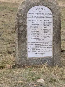 During Buller's advance, at a time when it was unclear to the Boers whether he was going to Machadodorp or Belfast, they removed the Long Tom from the railway truck and placed it near Elandskop.[19] The remains of the emplacements was found at 25°46.214'S, 30°12.829'E (WGS84). When Buller advanced from Twyfelaar to Van Wyk's Vley, it was clear that he was aiming at Belfast. The Boers then moved the gun to Captain von Dalwig's camp on the farm Waaikraal.[20] The remains of the emplacement can be found at 25°46.225'S, 30°09.079'E(WGS84).