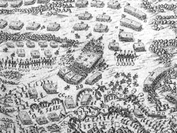 The Battle of Khotyn or Battle of Chocim or Khotyn War[8] (in Turkish: Hotin Muharebesi) was a combined siege and series of battles which took place from 2 September to 9 October 1621 between a Polish–Lithuanian Commonwealth, commanded by the Grand Hetman of Lithuania Jan Karol Chodkiewicz, against an invading Ottoman Imperial army, led by Sultan Osman II, which was stopped until the first autumn snows. On 9 October, due to the lateness of the season and heavy losses - due to failed assaults on Commonwealth fortifications - the Ottomans abandoned their siege and the battle concluded with a stalemate, which is reflected in the treaty where some sections favour the Ottomans while others favoured the Commonwealth. Chodkiewicz died on 24 September 1621 shortly before concluding a treaty with the Turks.