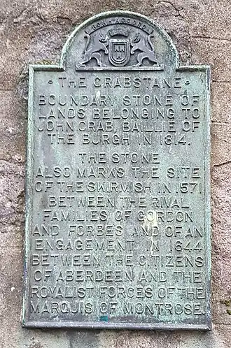 The Battle of Craibstone was fought on 20 November 1571 between Clan Gordon and the Clan Forbes on an area that has now been constructed over, found in central Aberdeen, Scotland.[3] It was part of the Marian civil war in which the Clan Forbes supported the King James VI and the Clan Gordon supported Mary, Queen of Scots.