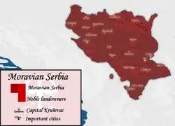 The Battle of Dubravnica was fought in the summer of 1380 or December 1381, on the Dubravnica River near Paraćin in today's central Serbia, between the Serbian forces of Prince Lazar of Serbia led by commanders Vitomir and Crep and the invading Ottoman Turks of Sultan Murad I. Vitomir and Crep were the regional lords, and one of their fortresses, Petrus, was in the vicinity of the battle.