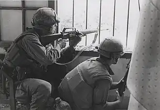 ![]() Marines from A Company, 1st Battalion, 1st Marines, engaged in house-to-house combat in Huế in February 1968 | |||||||